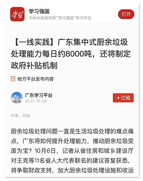 【人大工作】《学习强国·广东学习平台》专题报道|省住建厅对王克代表联名建议答复:将加大厨余垃圾处理设施和收运处置体系建设 2021-10-9 来源:学习强国·广东学习平台 作者:《南方日报》姚瑶