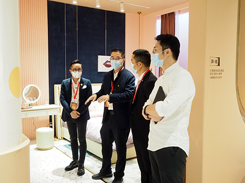 广东省家具协会王克会长先后参观泛家居综合展区,以及南海家具协会、迪奥比公司、新达高梵公司、林氏木业、源田床具机械公司、中南公司展厅、华博居公司等企业展厅,了解企业发展和新产品开发情况。