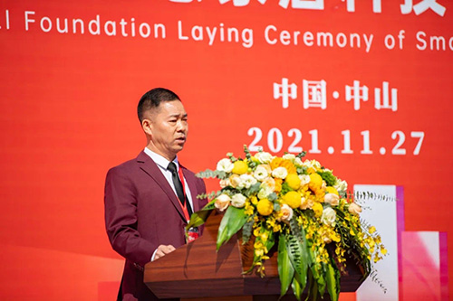 广东省家具协会会长王克代表行业协会发表题为《创新驱动,致力打造高水准办公家具产业样板工程》的重要讲话。他指出:中泰龙集团成立38年来,立足中山、坚守实业、坚持主业,旗下派格、中泰、国景、凡度、和砚等品牌逐步形成优势互补、齐头并进之势,已经成为我国办公家具的龙头企业,值得点赞!今天,智慧家居科技产业园的动工,是中泰龙集团在“十四五”开局之年的重大举措,标志着企业将迈上智慧家居绿色发展的新阶段。他表示,希望中泰龙集团抓住这个三旧改造项目的契机,建设一个全自动化、信息化、智能化的现代化生产线,集科研、产品开发、生产、检测、仓储、物流、生活一体的全国一流的现代化家居科技产业园,形成生产高效、管理有序的产业布局。致力打造中国高水准办公家具行业样板工程,带动办公家具产业数字化转型升级,成为新时期走创新型、效益型、集约型、生态型发展之路的行业标兵,向企业四十周年献礼,为企业百年风华千秋伟业打下坚实基础,为促进我省家具行业高质量发展作出新的贡献!