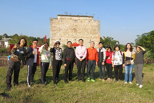 接着,大家来到位于始兴沈所镇八一村,参观外营保卫战遗址。1919年,由该村村民集资兴建外营围楼,高五层,四面墙用河卵石垒砌、石灰糯米浆黏合而成。1945年8月,抗日战争胜利前夕,震惊广东的“外营惨案”就发生在这里,风度大队24名战士壮烈牺牲,88名群众惨遭杀害。今天的围楼残存四壁,弹痕累累依然可见。