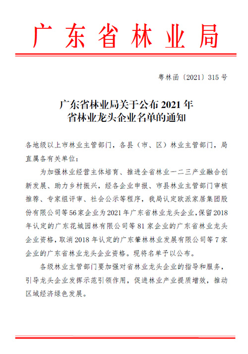 广东家协6家会员单位获2021年广东省林业龙头企业称号 2021-12-14 来源:广东家具网、广东省林业局