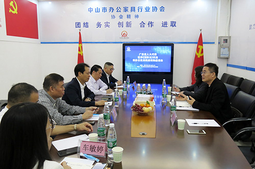 座谈会上,中山市办公家具行业协会会长、华盛家具董事长姚永红,迪欧家具常务副总裁黄云林,富美达家具副总裁林先开,思进家具董事长廖健程,海邦家具董事长江忠明,中山市办公家具行业协会秘书长车敏婷围绕《中华人民共和国消防法》、《广东省实施〈中华人民共和国消防法〉办法》实施过程中,办公家具企业在落实消防安全责任,防范和化解消防安全风险,预防和减少火灾危害,保障人民群众生命财产安全中遇到的问题;住建部门在企业建设工程管理时,进行消防工程的设计审查、消防验收、备案和抽查工作的变化;企业在消防救援机构对公众聚集场所进行消防安全检查时遇到的问题;以及根据《中华人民共和国招标投标法》、《广东省实施<中华人民共和国招标投标法>办法》,我省办公家具政府采购工作实施情况,企业遇到的问题;政府采购部门在评标时采取最低价中标的弊病,与发扬工匠精神的关系等内容,结合工作实际,表达各自的看法,并提出建议。