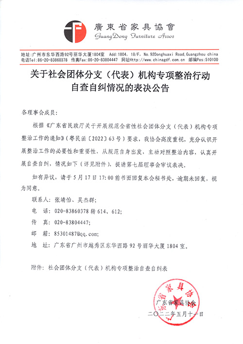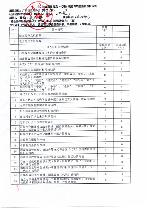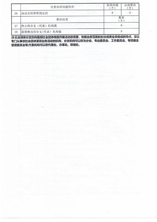 关于社会团体分支(代表)机构专项整治行动自查自纠情况