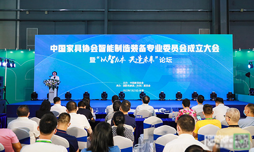 7月23日,中国家具协会智能制造装备专业委员会成立大会暨“以智为本共造未来”论坛在东莞召开。中国轻工业联合会党委副书记、中国家具协会理事长徐祥楠,中国家协副理事长张冰冰、副理事长兼秘书长屠祺,广东省家具协会会长王克,东莞市厚街镇领导方活力等领导嘉宾出席大会。