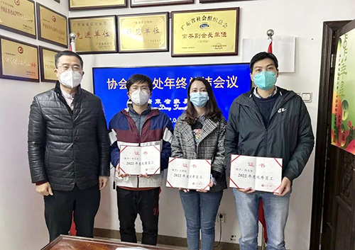 王会长指出:2022年我们团结协作、开拓进取、创先争优、取得成效,努力克服疫情影响,基本完成各项工作任务,取得了较好的成绩。秘书处各部门的工作各有千秋、各有特色,在重大活动中体现团结协作精神值得称赞。一年来,展览部刘文龙、会员部王娟容、编辑部陈志荣同志工作表现突出,经秘书处领导办公会议研究决定,授予“2022年度优秀员工”,以资鼓励。王会长强调,2023年我们要坚持党建引领,坚定信心、团结一致、开拓进取、稳中求进,深入学习贯彻二十大精神、中央和省委及经济工作会议部署,不断提高员工的政治素质和服务能力,努力开拓协会工作新局面,促进我省家具行业高质量发展。