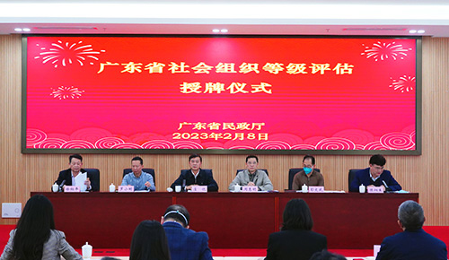 2023年2月8日,2021年度全省性社会组织等级评估工作授牌仪式在广东省民政厅隆重举行。省民政厅党组成员、副厅长,省社会组织管理局党组书记、局长庄侃出席并讲话。