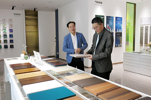 3月13日,广东省家具协会王克会长前往副会长单位广东漆加化工集团调研,深入了解企业发展情况,并与李剑文董事长就推动家具设计创新进行探讨。