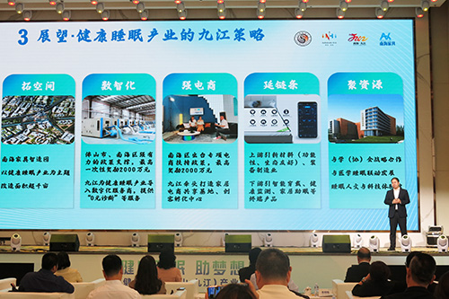 活动现场,九江镇与中国睡眠研究会签约共建“粤港澳大湾区(佛山·九江)健康睡眠产业集聚区”战略合作,共同致力建设粤港澳大湾区(佛山·九江)健康睡眠产业集聚区建设。 南海区人大常委会主任、党组书记香秀杏在致辞时表示,南海作为全国制造强区,近年来,不断集聚发展资源,促进传统产业转型升级,健康睡眠产品作为传统家具产业的新赛道,南海将大力支持健康睡眠产业的发展,共同推动传统家居产业的转型升级,实现高质量发展。 九江镇镇长罗淮东表示,九江健康睡眠产业要闯过从“幕后”走向“台前”、从“生产单元的自动化”到“全链条的数智化”、从“睡得好”到“睡得香”再到“睡得更健康”这三道关。九江将立足“中国床垫第一镇”,围绕拓空间、数智化、强电商、延链条和聚资源五大重点工作,努力打造健康睡眠产业新高地。