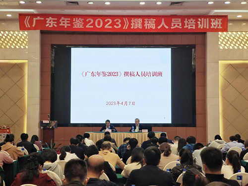 4月7日上午,《广东年鉴2023》撰稿人员培训班在广州举办。广东省人民政府地方志办公室党组成员、副主任丘洪松出席并讲话,负责编写《广东年鉴2023》的有关省直及中央驻粤编写单位、各地级以上市编写组稿件负责人和撰稿人共140余人参加培训,广东家协派代表参加培训。广东年鉴社社长莫秀吉主持培训活动并作业务辅导。 丘洪松以“守正创新 推进广东年鉴事业高质量发展”为题,对《广东年鉴2022》编纂工作情况进行总结和回顾,部署2023年编纂工作任务。丘洪松指出,广东年鉴作为省政府主管、省长担任主编的大型省情资料工具书,具有鲜明的地方特色和时代特征,是讲好广东故事、树立广东形象的亮丽名片。丘洪松从提高政治站位、落实意识形态工作责任,围绕中心工作、记录广东发展,坚持以人民为中心、提高内容的实用性等三个方面全面总结《广东年鉴2022》的主要成绩与创新特色。