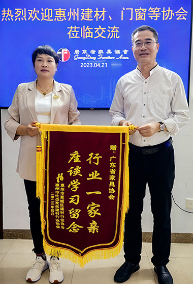 座谈伊始,王克会长对惠州市生态家居建材行业协会的来访表示了热烈的欢迎。通过广东家协30周年工作回顾、党建10年工作回顾等视频资料,结合现场讲述,介绍了广东家协办会情况,协会坚持党建引领,在每次行业转型升级关键时期,提前部署,主动作为,带领我省家具行业拥抱机遇,稳步发展。