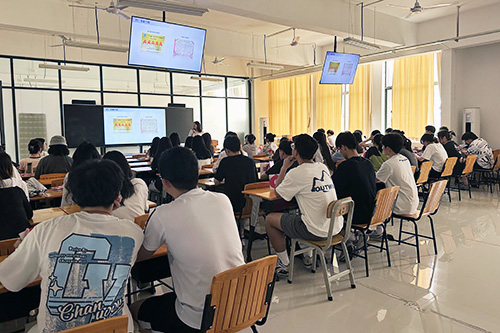 广东建设职业技术学院建筑设计艺术学院院长黄莉,家具教研室主任李伶俐,教师杨中强、侯利阳等介绍了学院的专业发展情况。黄院长对广东家协举办的各项设计创新活动表示支持,并鼓励学生积极参与,同时期待加强与广东家协开展更紧密的合作。 广东家协创新部主管辛宝珊介绍了协会主办的系列设计活动内容,包括:“省长杯”工业设计大赛泛家居专项赛、广州家居设计展、行业摄影大赛等,详细讲解了2023年“华笔奖”系列家具设计大赛“红古轩杯、百利杯、健威杯、ONLEAD杯、迪欧杯”的征集细则、参赛对象、投稿方式、评审规则、奖项设置等内容,并同师生一起分享往届“华笔奖”的获奖作品。同学们反响热烈,积极互动。