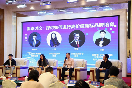 在圆桌论坛环节,中央财经大学教授杜颖、广东省家具协会会长王克、无限极(中国)有限公司法律事务部知识产权管理主任王彬三位重量级知识产权研究领域专家探讨如何进行高价值商标品牌培育,超凡商标事业部副总经理杨静安主持。三位嘉宾从不同角度,对高价值商标品牌的认识、高价值商标品牌培育对象和覆盖面、从行业及产业的分类培育、均衡发展、政策导向等多个方向提出专业建议和想法,充分调动了现场嘉宾的积极性,为本次大会起到了画龙点睛之笔的作用。