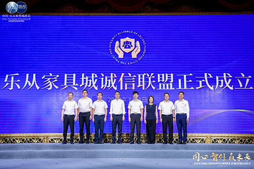 活动上,为提升乐从家具市场服务水平,推动市场良性运行,稳定发展,建设健康有序、可持续发展的产业经济环境,由政府全力推动,成立佛山市顺德区乐从家具城诚信联盟。诚信联盟的正式启动,标志着乐从家具产业创建放心消费,诚信市场的征程已迈出坚实的步伐。未来,乐从家具市场将一步一脚印,扎实稳健地勇攀行业的更高峰。 作为乐从三大传统优势产业之一,乐从家具产业经过四十多年的发展,已经实现了从棚式结构的家具店铺到规模磅礴的家具产业群、从简单的木制家具展销会到永不落幕的家居博览会、从“中国家具商贸之都”到“中国家居商贸与创新之都”的腾飞。