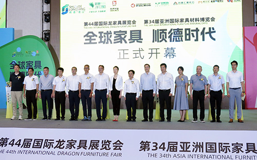8月19日,第44届国际龙家具展览会、第34届亚洲国际家具材料博览会在顺德龙江镇开幕。中国家具协会副理事长兼秘书长屠祺,顺德区委常委、副区长梁伟沛,广东省家具协会会长王克,龙江镇党委书记甘志宇、镇长伍成亮,广东省家具协会执行会长兼秘书长张承志、执行会长李礼,顺德家具协会永远会长、前进汇展中心有限公司董事长谭广照,顺德家具协会会长左建华,以及米兰汇家居展贸中心、亚洲国际家具材料交易中心、玛奥汇展中心、世博汇全球软体软装设计选材城负责人等领导嘉宾出席开幕式。