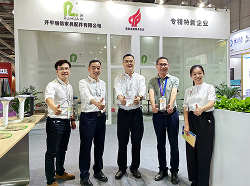 展会期间,作为主办方之一,广东省家具协会会长王克、执行会长兼秘书长张承志、副秘书长陈凌先后前往联邦家私、前进家居、迪欧家具、恒业机械、众联机械、源田机械、富凯家具、致兴家具、宝恩家居、瑞信家具配件、复兴隆家私、奥彬家具、沃高家具、亿派家具、意达科技、斯可馨家居、先达数控等企业展位,了解企业的参展情况,与企业负责人就行业形势、家居消费、设计创新等方面进行交流和探讨。 走访中,王克会长鼓励广东的参展企业提振发展信心,用好有关促进家居消费和民营经济发展的政策,通过中国家博会的平台,坚持两条腿走路、内外并举,注意规避国际贸易风险,积极开拓国内外市场。同时,坚持设计创新,扩大优质家居产品供给。建议企业聚焦新中式客厅家具、茶室空间,践行“发展新中式家具、倡导新生活方式”的理念,在家具消费中增强文化自信。建议大家聚焦康养产业,当前,广东已经进入老年化社会,全省60岁及以上常住老年人口1556.51万人,占比12.35%。因此,按照95%居家养老,4%在社区和养老院养老,1%在医院养老,未来康养家具及其设施的需求十分可观,值得大力挖掘。