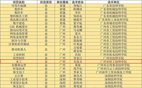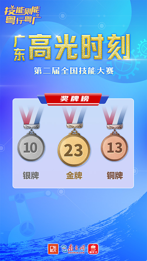 闭幕式围绕《匠心》《筑梦》《技艺》《未来》四个篇章进行了现场技能展演。来自全国各地各行业的大国工匠、劳动模范、全国技术能手、世赛冠军、大赛合作伙伴等作为颁奖嘉宾,为本届大赛获金、银、铜牌的393名选手颁奖。现场揭晓了最受欢迎的十大绝技,公布了参赛队最佳奖、西部技能之星和大赛突出贡献奖、优秀组织奖获奖名单。 大赛组委会、执委会成员单位负责同志,各参赛代表团全体成员、参赛选手、裁判员,赞助企业和实施保障单位代表,以及有关媒体记者共8000余人参加闭幕式。 广东代表团成绩优异 据了解,广东代表团在第二届全国技能大赛共获得金牌23枚,银牌10枚,铜牌13枚,优胜奖63个。