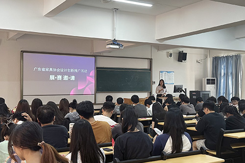为推动我省家具行业设计创新高质量发展,促进培养面向行业的实用型、创新型人才,增进校企间“产学研”合作交流,广东省家具协会举办了“华笔奖”系列家具设计大赛等设计创新活动。 10月26日下午,广东省家具协会设计创新推广交流活动第十四站来到广州理工学院。在艺术设计学院尚华院长大力支持下,活动得到就业干事杨茜老师的积极组织,设计专业师生约100人到场参加。