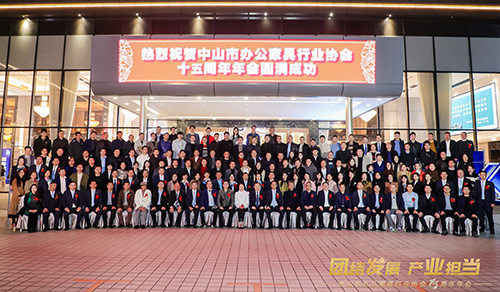12月26日晚,以“团结发展 产业担当”为主题的中山市办公家具行业协会十五周年年会在中山市小榄镇隆重举行。中国轻工业联合会党委副书记、中国家具协会理事长徐祥楠,中山市委常委、统战部部长刘美新,小榄镇党委书记赵锡雄、镇长赖文盛,省社会组织党委委员、省家具协会会长王克,中国家具协会副理事长兼秘书长屠祺,中山市办公家具行业协会会长、华盛家具集团董事长姚永红等,以及中山市镇有关职能部门负责人、中山办公家协全体会员参加活动。