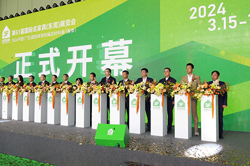 3月15日,第51届国际名家具(东莞)展览会在东莞厚街广东现代展览中心开幕。东莞市委常委、副市长邢文聚,中国家具协会理事长徐祥楠、副理事长兼秘书长屠祺,广东省家具协会会长王克,东莞市厚街镇党委书记谢卫东、镇长陈尚荣,东莞名家具俱乐部理事长林炳辉,香港家私协会主席张呈峰等领导嘉宾,以及大型家居卖场负责人、经销商代表出席开幕式。