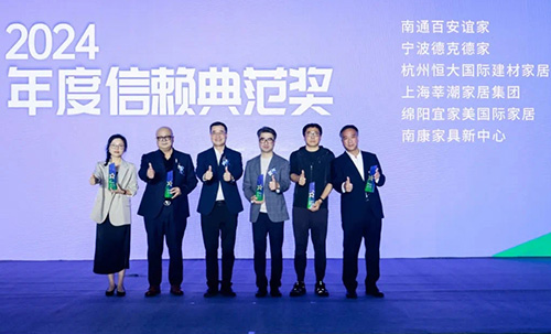 3月14日,第51届国际名家具(东莞)展览会欢迎晚宴暨2024中国家具销售商年度盛典举行。王克会长出席并为2024年度信赖典范奖颁奖。