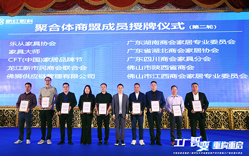会议的最后,省家具协会王克会长以及央企安能集团乡村振兴架构师周建军博士为20家商协会会长进行了数字经济时代的新物种——聚合体商盟成员的授牌仪式,正式揭开了充分体现“共生、共赢、共享”理念的数字化生态圈的共建序幕。 省家具行业数字化转型领导小组副组长、省家具协会执行会长兼秘书长张承志,工作小组成员郭力兵、刘溧云、张靖怡、王娟容、陈志荣等参加本次会议。