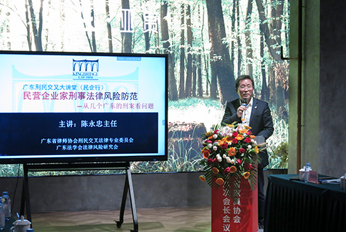 会上举办了《民营企业家刑事法律风险防范》公益法律讲座,由广东省律师协会刑民交叉法律专业委员会陈永忠主任主讲。他阐述了民营企业家在企业经营过程中可能面临的刑事法律风险及防范措施,为参会企业家提供了宝贵的法律指导。