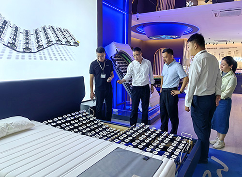敏华家具作为全球知名的上市公司,其全球化战略展现出企业强大的国际竞争力,为惠州家具产业走向世界树立了榜样。王克会长重点了解了敏华家具在智眠科技方面的创新探索成果,并与企业党总支部书记亲切交流,充分肯定了敏华党建工作为企业的持续健康发展提供了坚强的政治保障。