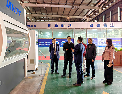 迪峰公司领导陪同王会长一行参观了企业的生产车间和智能生产线展厅,系统介绍了迪峰机械产品系列。王会长对迪峰机械产品的行业领先性给予了充分的肯定。
