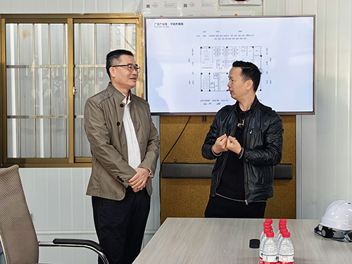 在广晋科技园项目建设工地,何广经总监详细介绍了企业发展、外贸出口、项目建设等情况。近年来,企业加大研发投入,持续深化产学研及与上下游产业链的合作,研制包括智能升降班台、人体工程学办公椅、健康智能办公生态系统、智能适老养老系统、多功能智慧高隔间等智慧健康办公及养老系统产品,深受市场青睐。2024年,新达高梵公司出口成绩斐然,同比增长20%,其中出口美国增长50%,体现了企业的发展优势和产品竞争力。正在建设中的广晋科技园项目占地约60亩,集研发、生产、物流于一体,推动产业转型升级,为企业和合作伙伴的创新发展提供优质而广阔的空间。