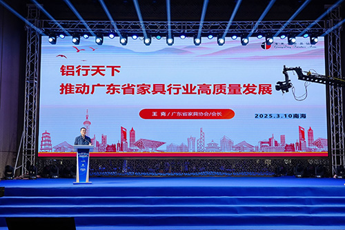 对于南海全铝家居行业的发展,王克会长希望南海全铝家居行业企业坚持“创新驱动、设计引领、优质优价、绿色发展”的指导思想,大力弘扬劳模精神、劳动精神、工匠精神、优秀企业家精神,进一步发挥全铝家居绿色智造、循环共生、低碳环保等特性,处理好配角与主角、全铝与混搭、标准与安全、内销与外销四个关系,在全屋整装、教育办公、户外文旅等方面开辟新天地、形成新优势,共同反对“内卷式”竞争,尤其是反对牺牲产品质量的“价格战”,推动广东省家具行业向高端化、智能化、绿色化发展,为粤贸全国、粤贸全球再立新功! 本次大会不仅是一次行业盛会,更成为了一次面向全国客商介绍南海营商环境的“推介大会”。南海大沥是知名的商贸重镇,有着全国领先的铝加工产业链和辐射全球的商贸网络。全铝整装行业就是在传统铝产业的基础上转型升级的新兴产业。