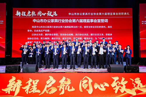 在就职环节,中山市办公家具行业协会第六届理监事会成员精神抖擞、集体亮相,庄严宣誓,将全力以赴为助力“中国办公家具重镇”建设,推动中国办公家具产业蓬勃发展贡献自己的力量。