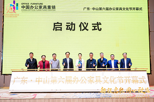 3月22日,广东·中山第六届办公家具文化节开幕式在“中国办公家具重镇”小榄镇隆重举行。中国家具协会副理事长兼秘书长屠祺,广东省社会组织党委委员、广东省家具协会会长王克,中山市工商联党组成员、副主席谭文辉,中山市小榄镇党委委员张泽武,广东省家具协会执行会长兼秘书长张承志,中山市办公家具行业协会会长姚永红等出席。