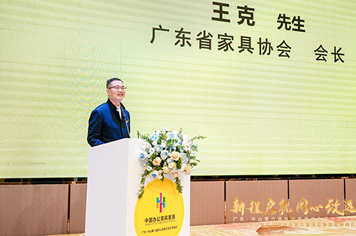 开幕式上,广东省家具协会会长王克在致辞中,分享了2024年广东省家具行业经济发展情况。2024年广东家具行业继续实现优质优价,保持全国领先的龙头地位,而其中作为广东省办公商用家具半壁江山的中山市发挥了重要的作用。他表示,中山办公家具文化节活动梅开六度、再次启动,延续“广州看展、中山看厂”模式,作为广州家博会主办方之一的代表,高兴地看到中山办公家具参展企业都在摩拳擦掌、跃跃欲试,彰显一种发奋图强、力争上游的精神状态,各种新品精品、创新模式和品牌形象,即将在广州家博会二期办公商用展闪亮登场,值得期待。