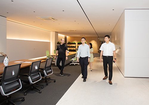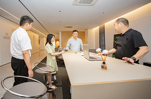 在开林宋寿辉董事长与王琪营销总监陪同下,王克会长参观了开林总部展厅。从员工日常办公场景到智慧办公前沿探索,从经典家具工艺传承到公寓生活空间创新,从实体办公到智慧场景,从单品设计到生态构建,四层立体展厅如同一部“办公生态进化史”,全景呈现开林在办公与居住空间领域的多维布局,更折射出开林从“制造”向“智造 + 场景创造”的升级轨迹。
