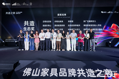 在“佛山家具品牌共造节颁奖盛典”环节,广东省家具协会会长王克为“共造生态奖”获得者颁奖。获奖者以独特的视角、创新的形式,为佛山家具品牌的传播和推广发挥了巨大的作用。