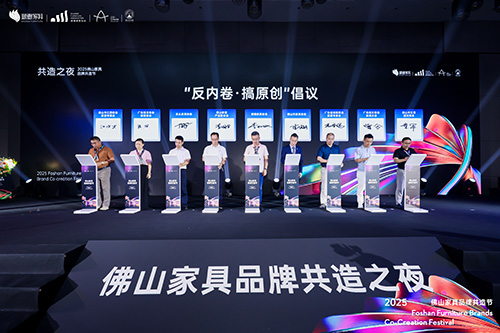 8月18日,2025佛山家具品牌共造节在佛山举行。此次共造节以“拒绝模仿•原创立本”为主题,围绕“反内卷,搞原创”为思想核心,旨在搭建一个交流、展示与合作的平台,共同发挥家具原创品牌影响力。广东省家具协会会长王克与中国家具协会理事长徐祥楠,龙江镇党委委员、副镇长廖启行,顺德家具协会会长左建华等一起启动共造节。广东省家具协会执行会长兼秘书长张承志、执行会长李礼出席活动,共同见证佛山家具品牌用原创点亮未来。