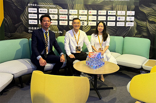 开馆仪式后,与会领导嘉宾参观十大品牌展位,与企业代表交流产品设计和市场趋势。