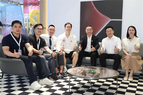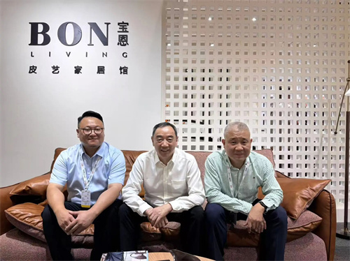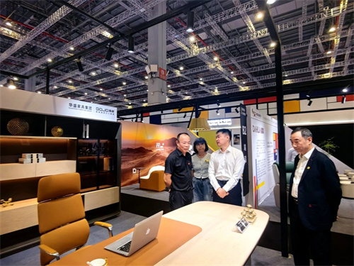 展会期间,广东省家具协会执行会长兼秘书长张承志带队走访了参展的会员单位,与企业负责人、设计师及参展人员进行深入交流,详细了解企业的最新发展动态、市场策略及面临的挑战,认真听取了会员单位对产品创新、品牌建设、市场拓展等方面的介绍,并就行业发展趋势、技术创新和绿色发展等议题进行探讨。