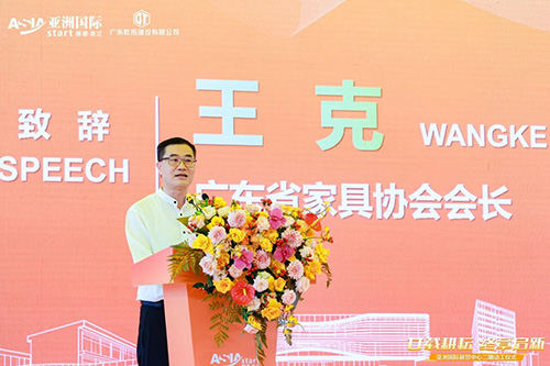 动工仪式上,王克会长在致辞中表示,亚洲国际展贸中心,不仅是龙江的骄傲,更是广东家具产业供应链上一颗璀璨的明珠。展贸中心二期的动工,更是顺势而为、乘势而上的关键之举,充分彰显亚洲国际对未来我国经济和家具及原辅材料行业发展充满的信心和决心。项目的建设,将极大完善我省家具产业的公共服务平台,对于降低全行业采购与创新成本、提升产业链协同效率、增强“广东家具”品牌的国际影响力具有全局性的重要意义。期待项目全面竣工交付使用后,通过上下游产业展贸一体化方式,构建产业升级的生态闭环,打造本土家居行业的破局样板,吸引更多优秀品牌和创新资源集聚,成为引领广东家具产业迈向价值链高端的新引擎。