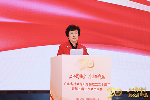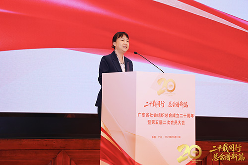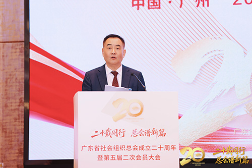 最后,中国社会组织促进会会长杨岳讲话,充分肯定广东总会成立二十年来取得的辉煌成就,主要体现在:一是远见绘蓝图,启动“十五五”发展规划的编制工作,展现了前瞻性的战略思维;二是聚智强支撑,牵头组建社会组织专家智库,为激发社会组织活力、提升治理效能贡献智慧;三是育才著华章,在社会组织人才建设上夯实力、求实效,为行业人才队伍的专业化、职业化建设注入强劲动力;四是公益暖南粤,引导会员积极参与乡村振兴,服务社会、造福民生;五是文化聚同心,精心培育和传承独特的组织文化,不断提升文化软实力。希望总会勇立潮头,继续建言献策,开放共享,贡献广东智慧,打造全国样板。中国社会组织促进会将继续支持总会工作,共同推动社会组织高质量发展。