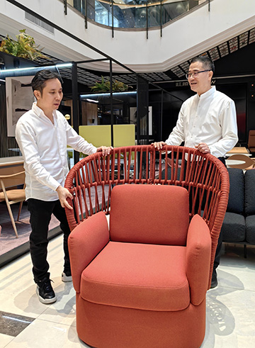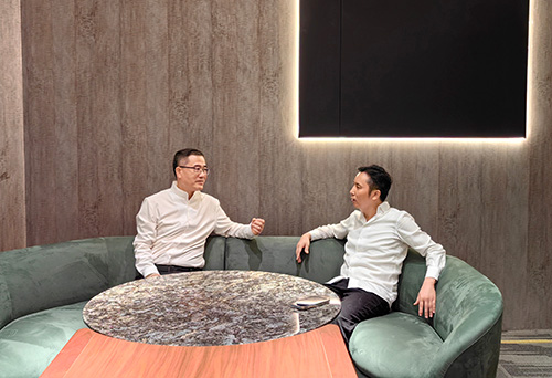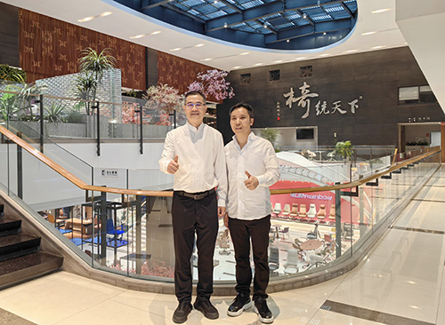 在左伯良董事长的陪同下,王克会长一行参观了融合时尚元素、艺术质感与生活气息的商用家具展厅,沉浸式感受企业产品的设计理念,对虹桥家具的产品体系、设计实力及品牌定位有了更为全面的了解。