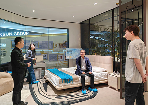 在张维乐总裁的陪同下,王克会长参观了美神集团旗下的七大系列产品,通过情况介绍和产品体验切实了解美神的工艺细节和品质标准。 张孔程董事长介绍,美神集团始终坚持对品质生活、家居美学的追求,持续创新,积极探索各类生活场景的家居化应用,开展多元化服务,以高标准、高质量、多风格、全品类,为消费者提供环保、健康、舒适的美学家居产品。 王克会长对美神集团创立36年来,始终专注于睡眠服务,坚持产品为本,重视品质工艺表示肯定。他鼓励美神集团把握“十五五”发展机遇,以智能化、绿色化、融合化发展方向,推动企业高质量发展,以市场需求为导向,更好满足消费者对美好家居生活的需求。