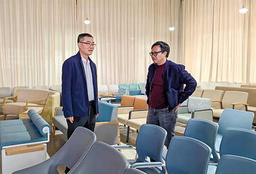 广东创奥家具有限公司经过多年的发展积累,旗下拥有商业办公软体家具、医养软体家具、艺术家具三大品牌系列,同时配套自有配件生产线“铁虎五金”与“普森隆定型棉 PU 生产线”。创奥公司重视产品研发和设计创新,获得百余项产品专利,产品备受合作伙伴赞誉,在国内各大设计类平台斩获多个奖项,如“省长杯”家具专项赛产品设计组三等奖、“红棉产品设计奖”等,荣获“高新企业”荣誉称号。 广东家协副秘书长张靖怡、媒体部经理陈志荣、创新综合部副经理辛宝珊参加调研。
