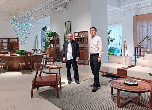 调研过程中,王克会长对倚至尚在家具文化挖掘、传承与创新方面取得的成果给予高度肯定。他强调,家具不仅是承载日常生活的实用器物,更是传递文化内涵的重要载体。广东省家具协会2009年开始举办新中式家具设计大赛,2014年旗帜鲜明地提出:“发展新中式家具,倡导新生活方式”,有力地推动我国家具行业设计创新。王会长指出,行业发展亟需广大设计师与品牌企业秉持守正创新精神,精准对接当下新生活方式需求,为消费者打造兼具艺术性、时尚感与舒适度的优质家具产品,以满足消费升级和个性化需求。