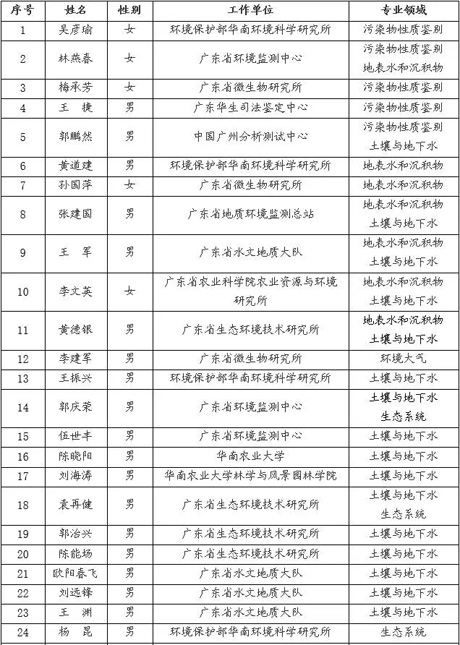 附 件:广东省环境损害司法鉴定机构机构登记评审专家库专家名单