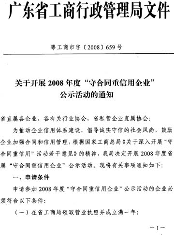 关于开展2008年度“守合同重信用企业”公示活动的通知